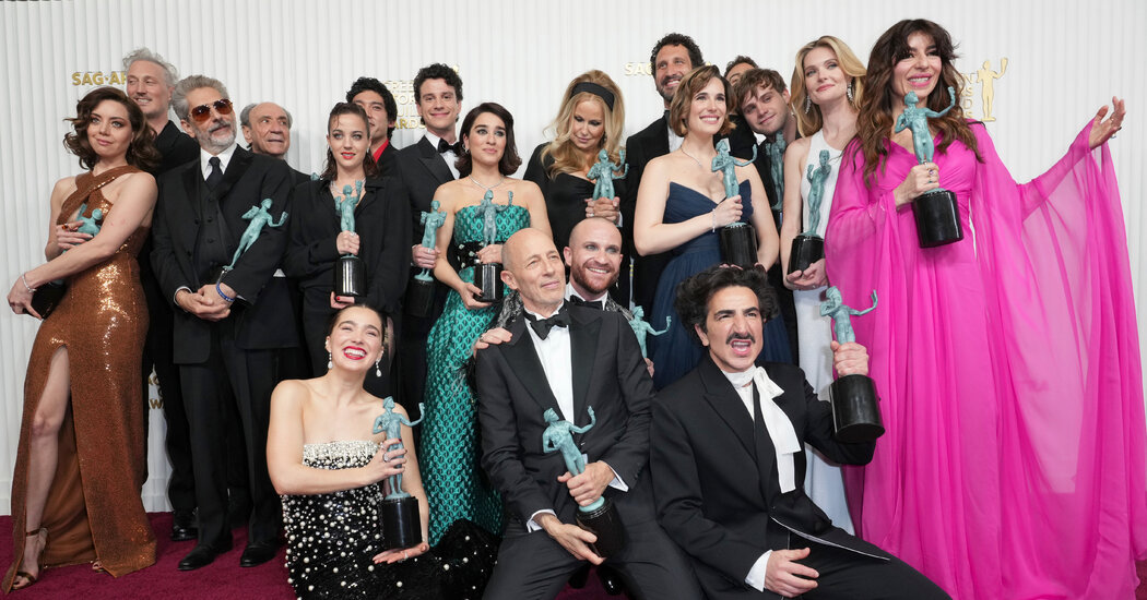 Текст выше является машинным переводом. Источник: https://www.nytimes.com/2023/02/27/style/sag-awards-red-carpet-fashion.html