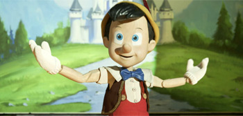 Pinocchio est le personnage CGI le mieux accompli, conçu comme une réplique parfaite en direct de sa version animée originale, tout comme Honest John. Cependant, Zemeckis fait interagir les personnages non seulement avec les humains, mais souvent dans des lieux réels, créant ce sentiment de « vallée étrange » où quelque chose ne semble jamais tout à fait bien. Des humains ramassant Pinocchio aux ombres des différents personnages animés, les effets visuels sont loin d’être convaincants. En plus de tout cela, certains designs sont assez décevants, à savoir Jiminy Cricket et Figaro le chat – de loin le pire élément animé du film.