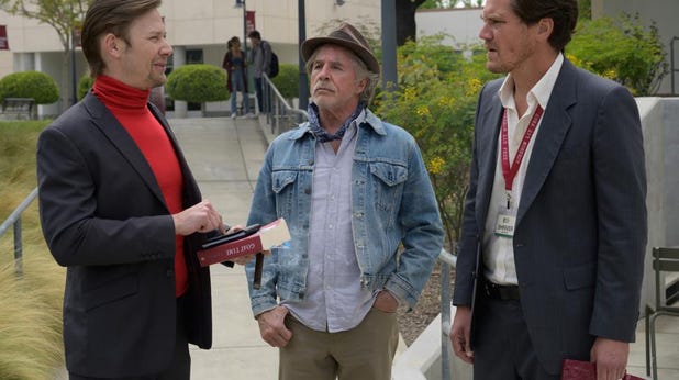 Bien que ce ne soit clairement pas intentionnel, cela convient tout à fait à un film centré sur un personnage prétendant être quelqu’un qu’il n’est pas. Le bricoleur CR Shriver (Michael Shannon) reçoit une invitation à prendre la parole en tant qu’invité d’honneur au 92e anniversaire de l’Université d’Achéron.sd Festival littéraire annuel, ce qui le déconcerte jusqu’à ce que son copain de beuverie, Lenny (Mark Boone Junior), l’informe qu’il partage un nom avec le célèbre romancier du célèbre roman. Temps de chèvre, qui est devenu un reclus à la Salinger au cours des quelque 20 années qui ont suivi le succès de ce livre. Sachant que personne ne sait à quoi ressemble actuellement le romancier Shriver et aspirant à une vie en dehors des nuits solitaires passées avec son chat, le bricoleur Shriver décide d’assister au festival en prétendant être le festival de renommée mondiale. Frissonnez.