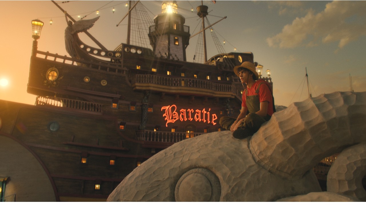 Le titre du spectacle, Une pièce, est le nom d’un grand trésor amassé par Gold Roger, devenu roi des pirates mais qui s’est ensuite rendu après avoir contracté une maladie incurable et a été exécuté publiquement. Avant sa mort, Roger a révélé au public qu’il avait caché tous les trésors qu’il avait collectés au fil des décennies « en un seul morceau » quelque part le long de Grand Line, la zone la plus traître et la plus dangereuse du monde. Les paroles de Roger ont déclenché «l’ère des pirates», envoyant de nombreuses personnes en mer à la recherche de son trésor et devenir le prochain roi des pirates.