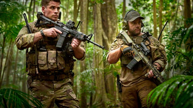 В одном месте Хемсворт прячется за деревьями, падает с холма и пытается не попасть под пулю; в другом Кроу бездельничает на военном объекте в Лас-Вегасе в гавайской рубашке, злится из-за кофейников Keurig, жалуется на то, что телефонный звонок отключен, и беспокоится о том, что его четвертая жена забеременеет и ее веганские диетические требования. Если то, что он служит в армии в его возрасте и форме, кажется более странным, чем то, что он был итальянским экзорцистом Папы в прошлом году, что ж, фильм наполовину объясняет это. Однако никогда не предполагается, что он особенно хорош в своей работе. Поэтому, когда другие офицеры снимают звание и угрожают взять на себя миссию, особой напряженности не возникает. Впервые в военном фильме об индивидуалистах кажется, что офицеры справятся с этой задачей не хуже, чем дурацкий одиночка.