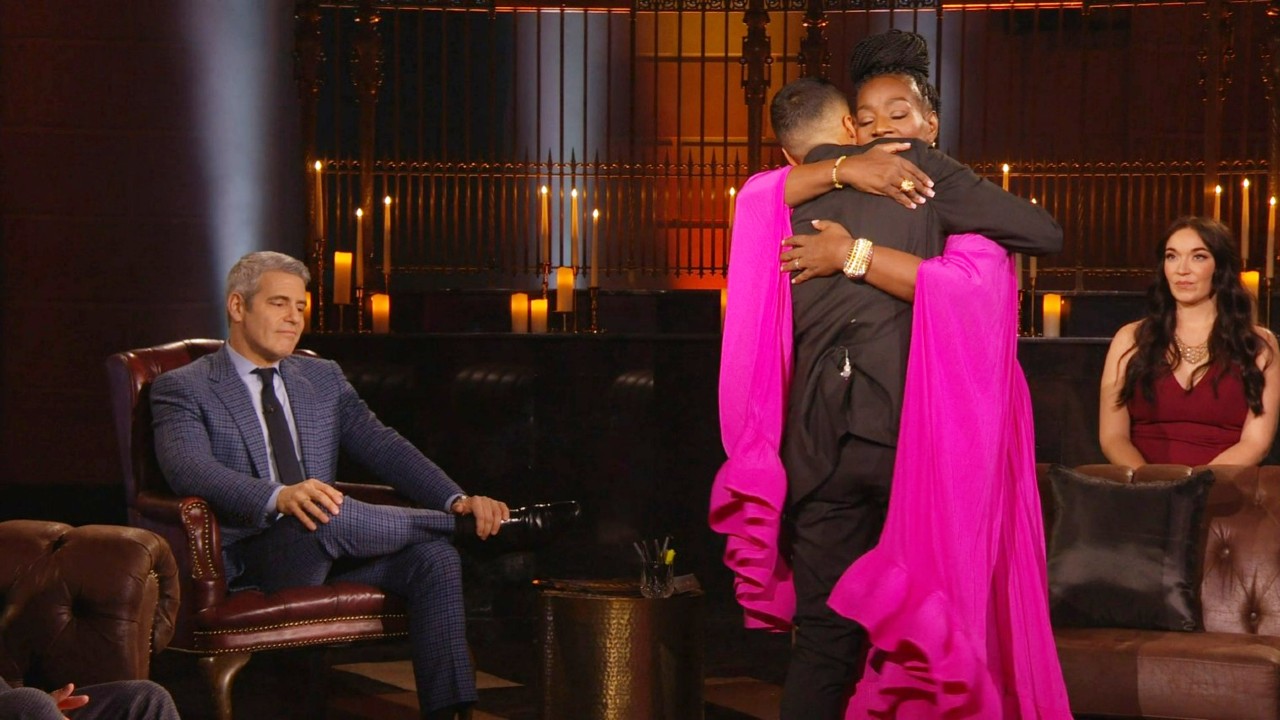 Только на Предатели существовали бы Энди Коэн и Алан Камминг в одной вселенной реалити-шоу. Алан Камминг начинает воссоединение, используя свой Предатели хозяин персоны, чтобы задать настроение. Затем это переходит к Энди Коэну, который выходит провести воссоединение. Это веселое вступление, потому что загадочный образ ведущего Камминга противоречит жизнерадостному образу ведущего Коэна.